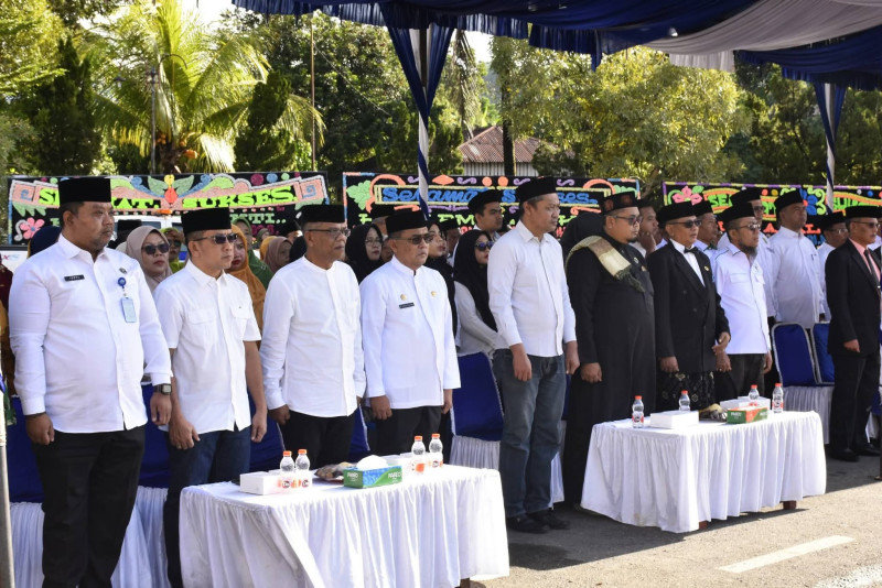 Upacara ini dihadiri oleh Unsur Forkopimda, Pj Sekda Madina Sahnan Pasaribu, para Asisten, Staf Ahli, Kepala OPD, Kepala Kantor Urusan Agama (KUA) se-Madina serta para guru dibawah naungan Kemenag Madina.
