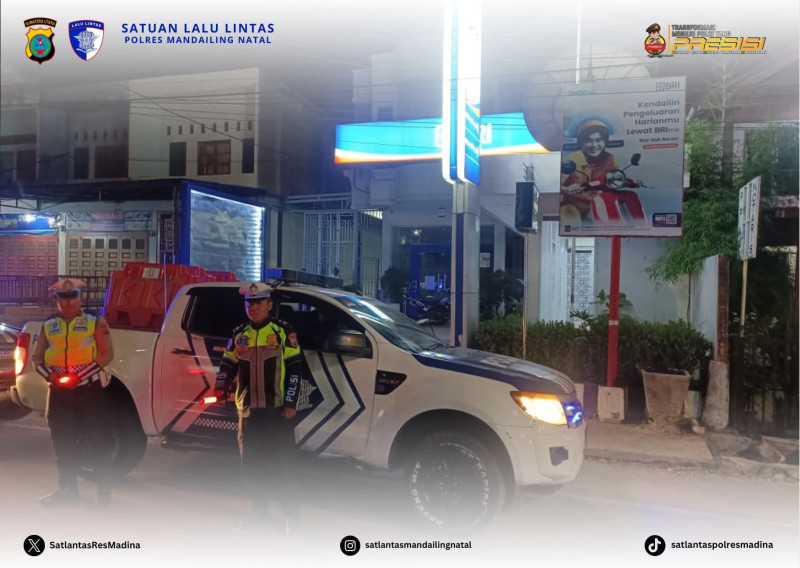TAPSEL.WAHANANEWS.CO, Panyabungan- Personil Polres Mandailing Natal melalui Satlantas melakukan patroli malam di wilayah kota Panyabungan Kecamatan Panyabungan Kabupaten Mandailing Natal, Sumatera Utara, Minggu Malam (3/11/2025).