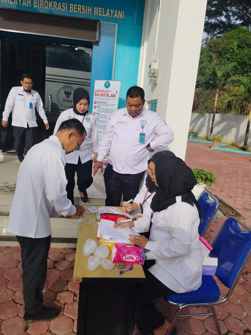 Jumlah Personil BNNK Madina terdiri dari 28 pegawai seluruhnya wajib dilakukan tes urine dan dari hasil pemeriksaan seluruh pegawai BNNK Madina adalah hasilnya Negatif.